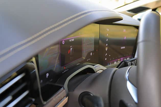 中控区域由左侧12英寸的全液晶仪表,以及右侧15英寸的中控大屏组合出来,这种一体化的设计也是时下比较流行的。偏向驾驶员一侧的中控屏能够为驾驶者带来更加便捷的使用体验。