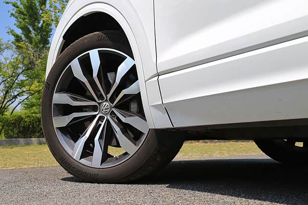 这台顶配版车型采用了21英寸的双五辐式轮圈,并采用了时下流行的双色设计。轮胎采用了规格为285/40 R21的普利司通轮胎。