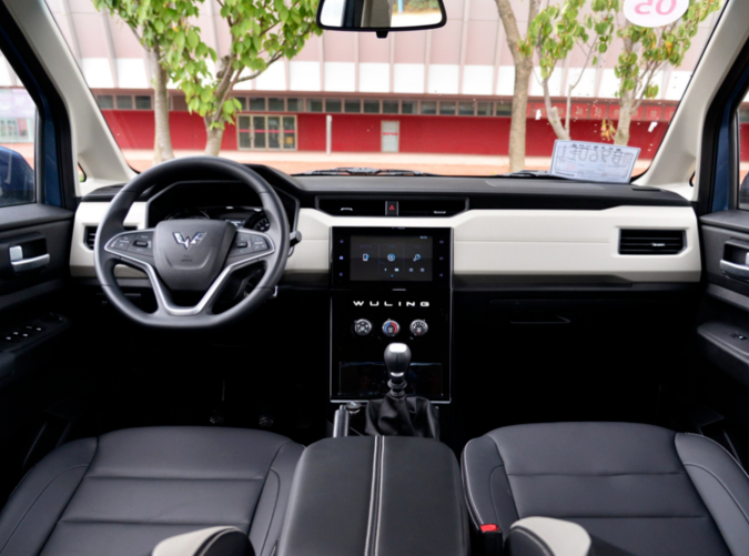 内饰方面,五菱宏光PLUS 1.5L版整体设计和现款基本保持一致,中控搭载一款内嵌式液晶显示屏,下方带有黑色的烤漆饰板,配置了空调控制旋钮以及“WULING”字样,辨识度很高,中控浅色的饰板造型非常立体,凸显出年轻化的设计风格。驾驶位搭载一款三幅式多功能方向盘,搭配圆形档把,显得十分动感。此外,新车提供了5/7/8座选择。