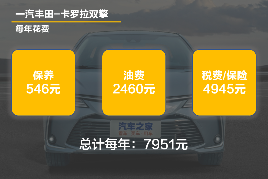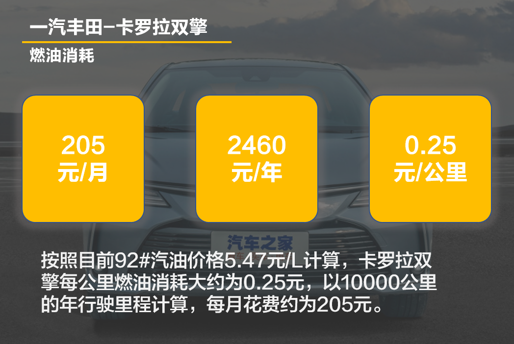根据计算,卡罗拉双擎每月的燃油花费仅在205元,每年2460元,以这样一个价格来说想必普通家庭完全负担得起。