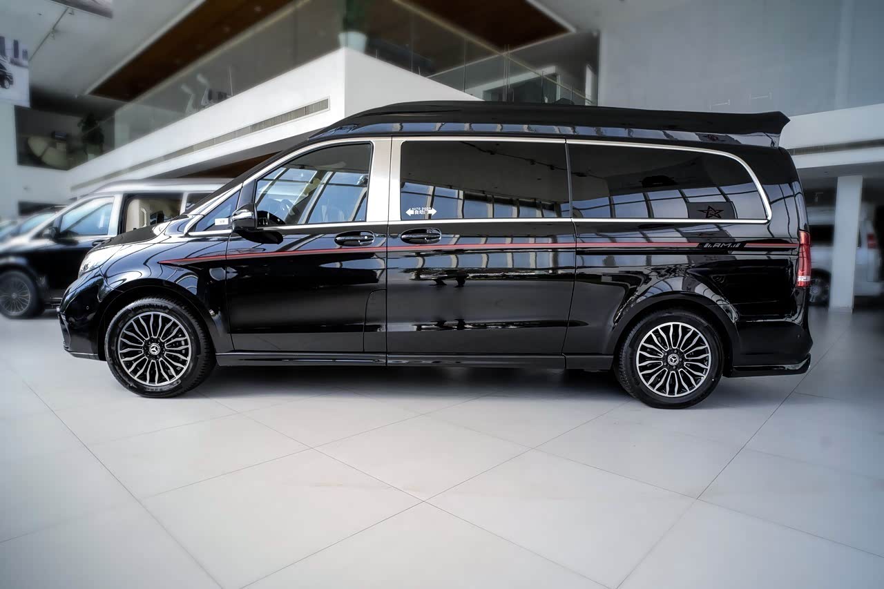 奔驰V260L巴塞罗娜版车辆侧面亮银饰条让车辆整体瞬间提升一个档次,让车辆外观整体感更加强烈,质感更高,底部侧裙包围也是亮点之一,利用空气动力学原理,在车辆高速行驶时阻止了车身两侧气流进入车底,保证了车辆在高速行驶时车辆稳定性。