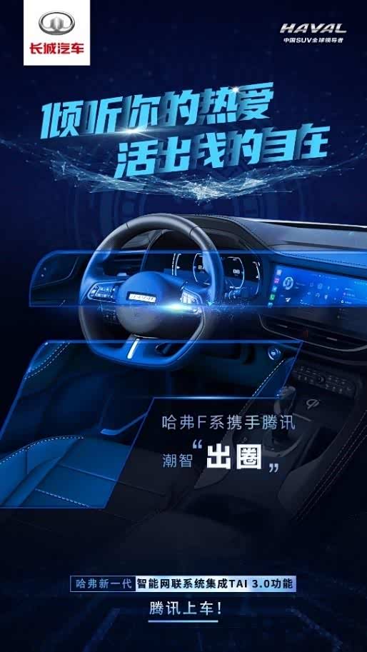 作为专攻年轻消费群体的“智能潮品SUV”,哈弗F系与腾讯的联手,不仅可为车主提供丰富的车载娱乐内容,更可进一步拓宽车载社交边界,获得打通上车前、行车时、下车后场景的无缝化体验,让社交体验随心所想、随行随享受,为年轻用户共构美好出行新未来、共创智慧出行新价值。
