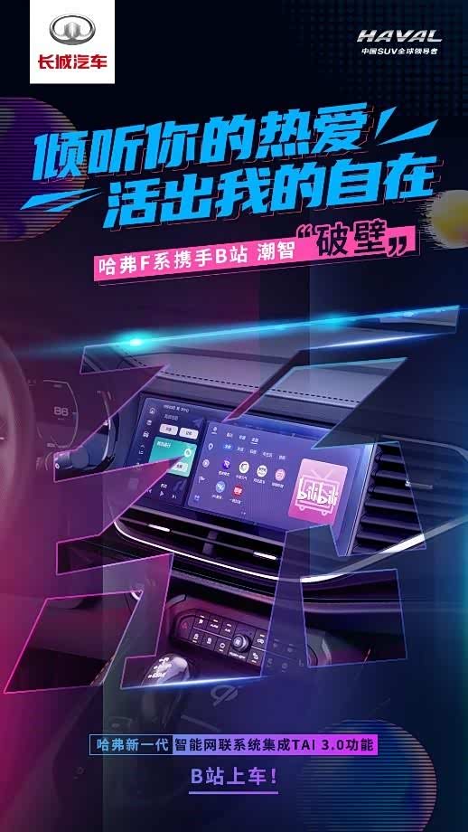 哈弗F系携手B站,不仅是积极拥抱“Z世代”的前沿之举,更有助哈弗F系以互联网思维打造更适合当下年轻人的潮智座驾。未来,用户在车上便可以随时欣赏B站的热门番剧、经典电影以及硬核UP主原创视频等优质内容。作为首批与B站进行合作的汽车品牌,相信哈弗将与B站一起持续打破次元壁,打造属于年轻人的智能AI座驾。
