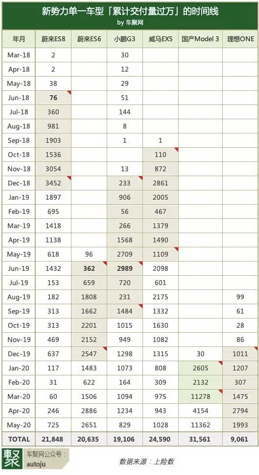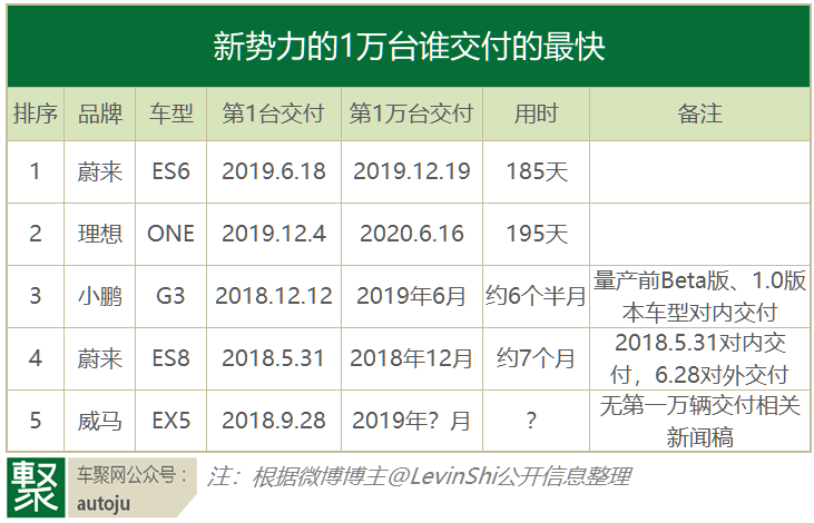 同时,根据这个表格,小鹏G3也用时六个半月,与理想ONE用时一样。