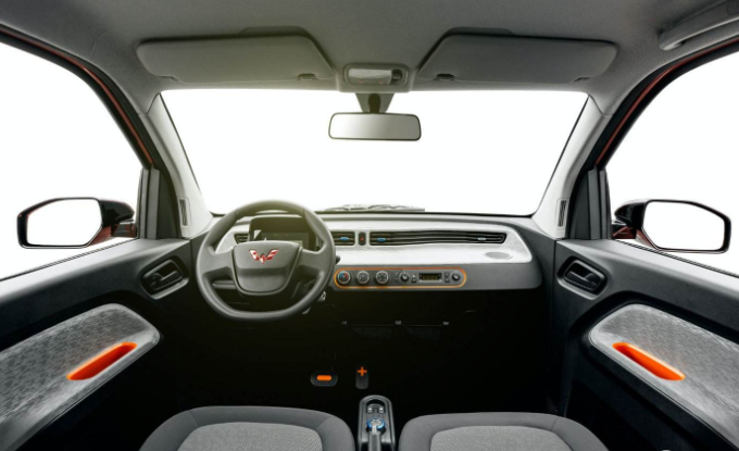 内饰设计方面,功能区布局一目了然,深色系的内饰和亮色的细节点缀有助于衬托出整台车的年轻气质和氛围。贯穿式的出风口,平整的中控台,这些设计都可以看出五菱的设计师在小空间内,尽可能设计出更加合理的布局。