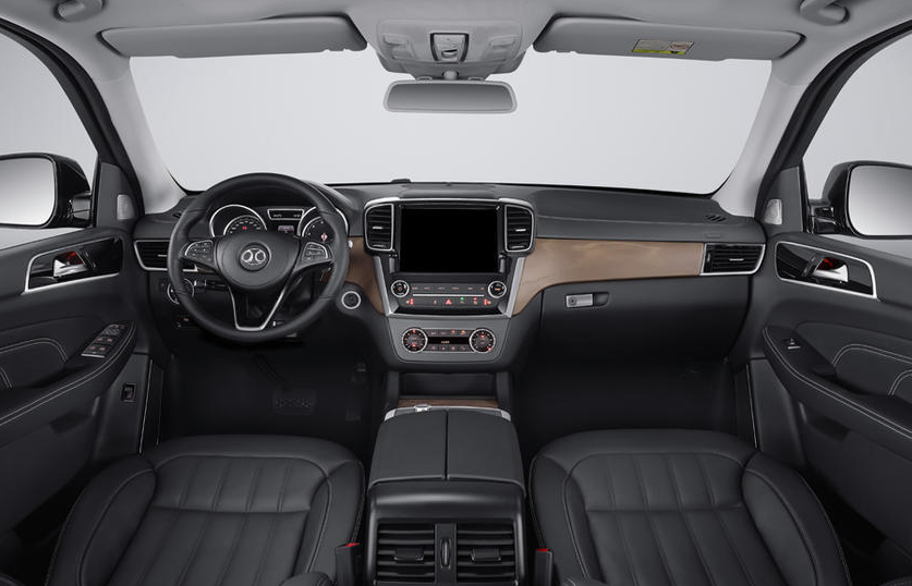 内饰方面,全新北京BJ90中控部分与老款奔驰GLS有着明显的不同,尽管在颜色搭配上依旧保留了奔驰GLS的风格,但是在布局方面,BJ90却采用了北京越野家族的内饰,中控台上镶嵌了一块10.4英寸的触摸大屏,通过中控台上的实体按键可直接对该车的车机交互系统进行操作,而且该车还将的座椅调节按钮移动至前排扶手箱前方。在内饰用料上,北京BJ90内部大量采用了真皮和实木装饰条,在深灰色的映衬下,该车内饰彰显的十分豪华大气。