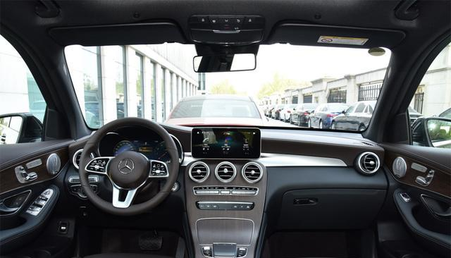 奔驰GLC的内饰设计上,自然是相当有豪华感,简洁精致的布局,12.3英寸全液晶仪表盘+10.25英寸中控大屏+家族式的真皮多功能方向盘,各种实木材质和细软真皮的用料搭配,使得整车的内饰质感和档次感十足,坐在车里极为享受。