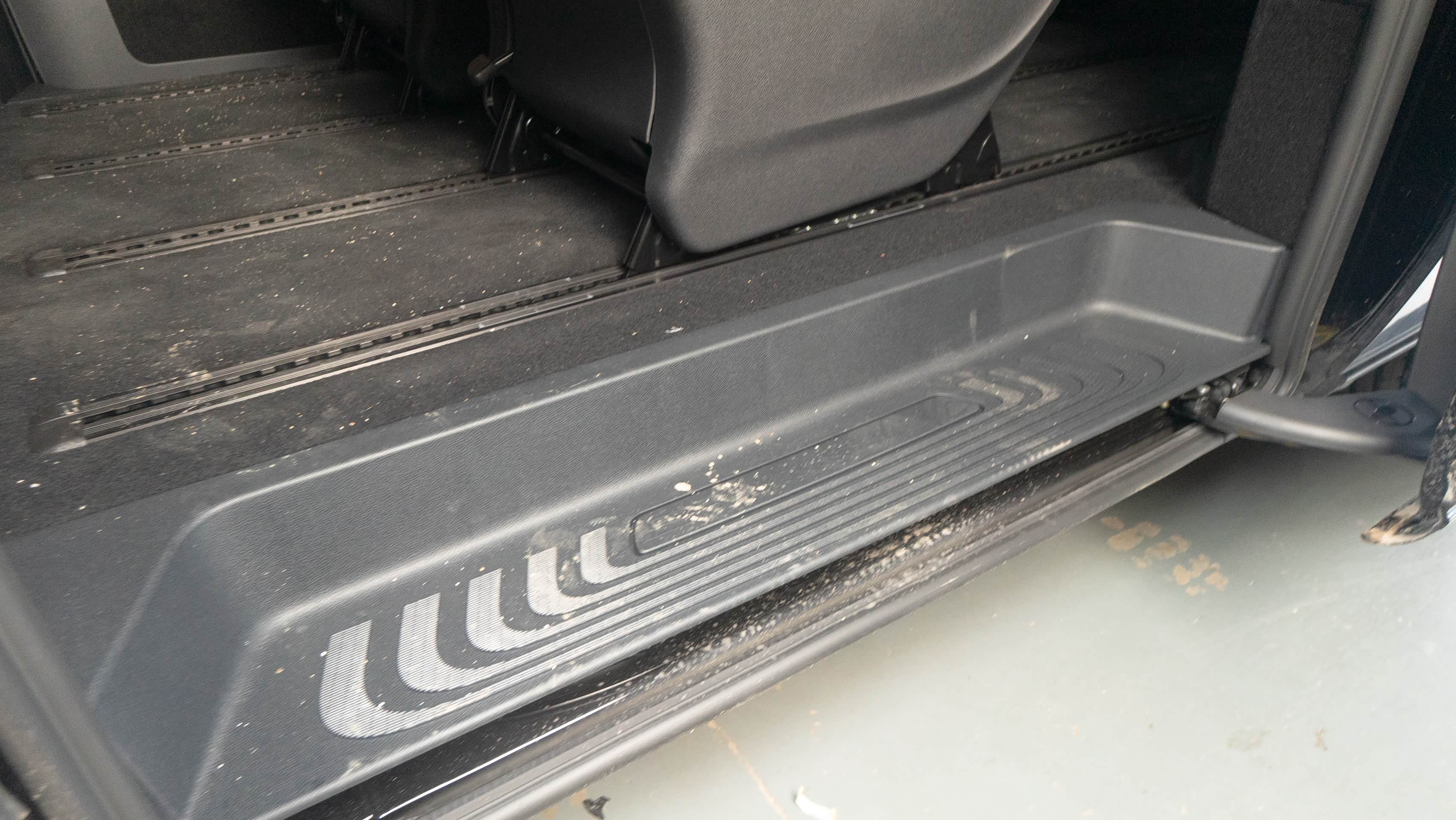 后排才是这次改的关键,迎宾踏板换成了铝合金材料制作而成,地板选择的是游艇的柚木地板。座椅选择航空座椅后,有人会说空间不够,不方便行走。
