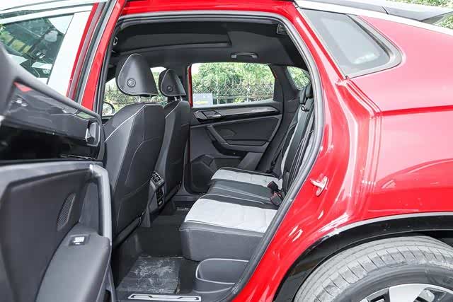 车身尺寸方面:新车长宽高为4626*1860*1662mm,轴距为2730mm,长度较普通车型有加强,但轴距并没更改,但因为探岳X的溜背造型聚集在了C柱,故此其后排头部空间并没有感觉压抑。