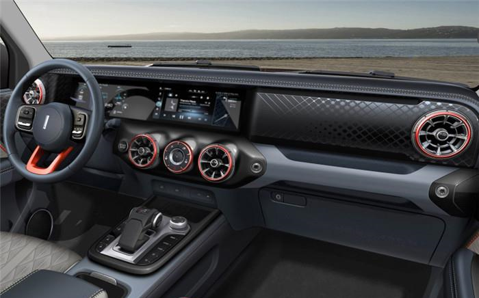坦克300的多功能方向盘样式新颖,上面会使用真皮包裹,并且还有着橙色装饰,最吸引人眼球的还是这一体式大屏,可以显示丰富的车辆信息,清晰度也非常高,并且拥有手机互联和映射、语音识别控制功能,另外还带有9种驾驶模式切换,可以应付不同的路况。