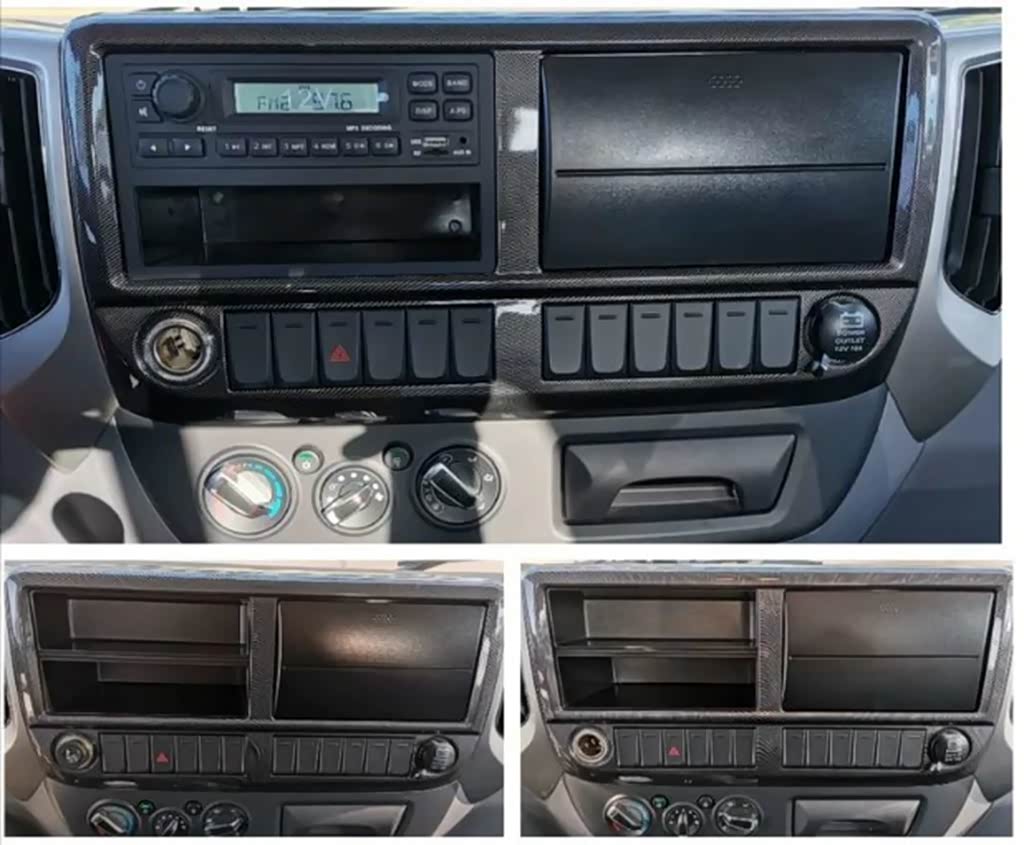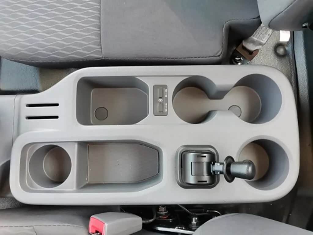 如果你认为青春版中控台没有设置USB接口是一个遗憾的话,别急往下看,变速杆后方水杯架和置物盒的上方设计了两个USB接口,便于驾驶员为手机充电。此外,置物盒后部安装了后仰式断气刹驻车手柄,之前我们讲过,这种后仰式设计非常有利于单排驾驶室人员休息,有效避免了人员平躺休息时的“硌背、硌腰”问题。