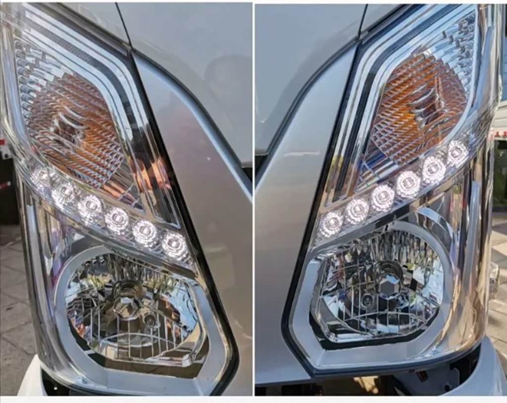 青春三浪的前组合灯为两侧上扬设计,集成了示廓灯、转向灯、远近光大灯以及日间行车灯。我们注意到,两侧上扬的LED日间行车灯颇具个性,在提高识别度和日间行车安全的同时,也正好契合了青春飞扬之意。