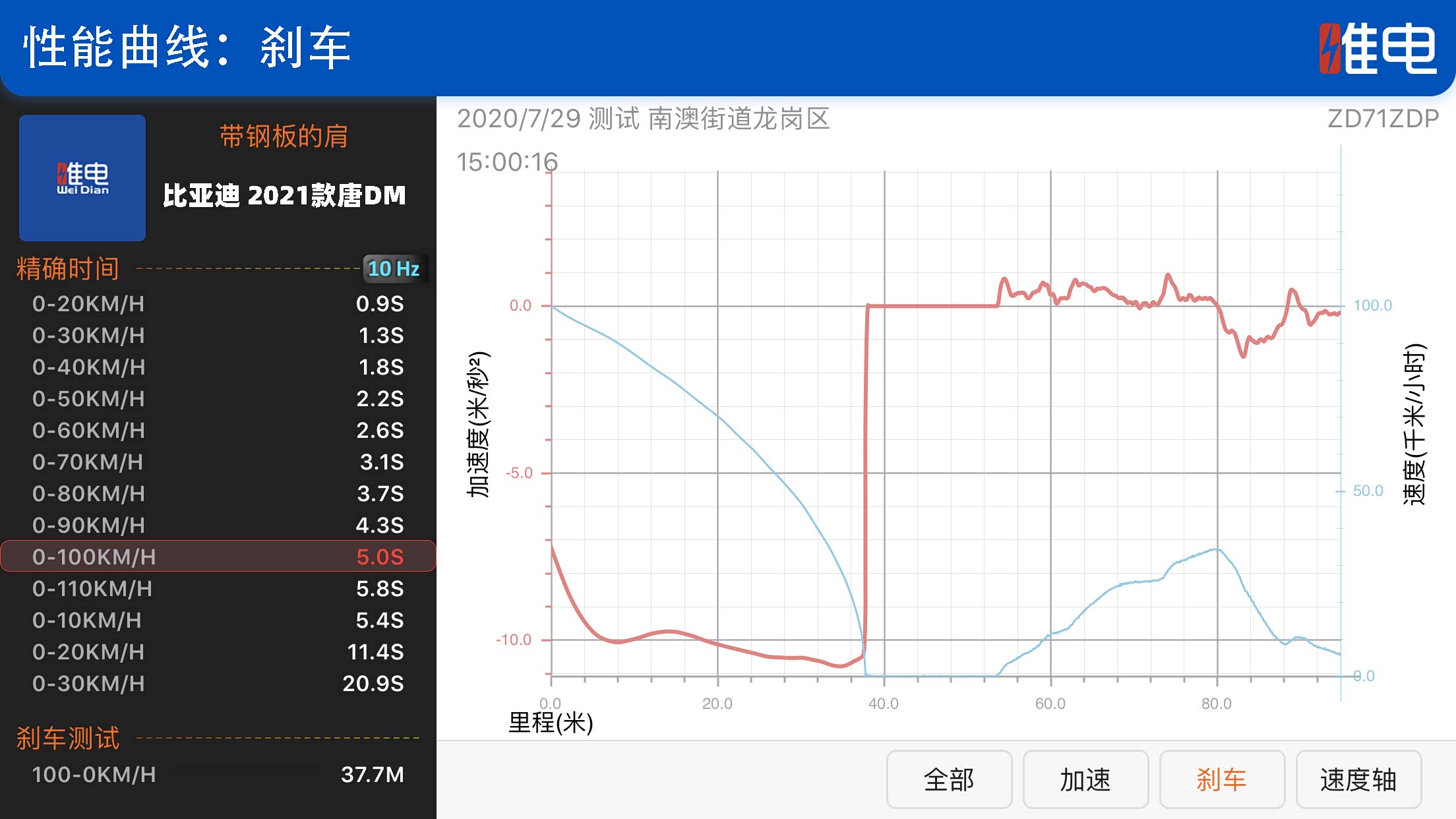 测试下来,0-100km/h的加速时间是5s,在相当于满载状态下,2021款唐DM的加速表现同样优异。而满载状态下100-0km/h的制动距离是37.7m,对于中大型SUV来说非常优秀,甚至超过了许多轿车的制动水平。这得益于博世最新的IPB智能刹车系统以及布雷博前6活塞卡钳的加持。