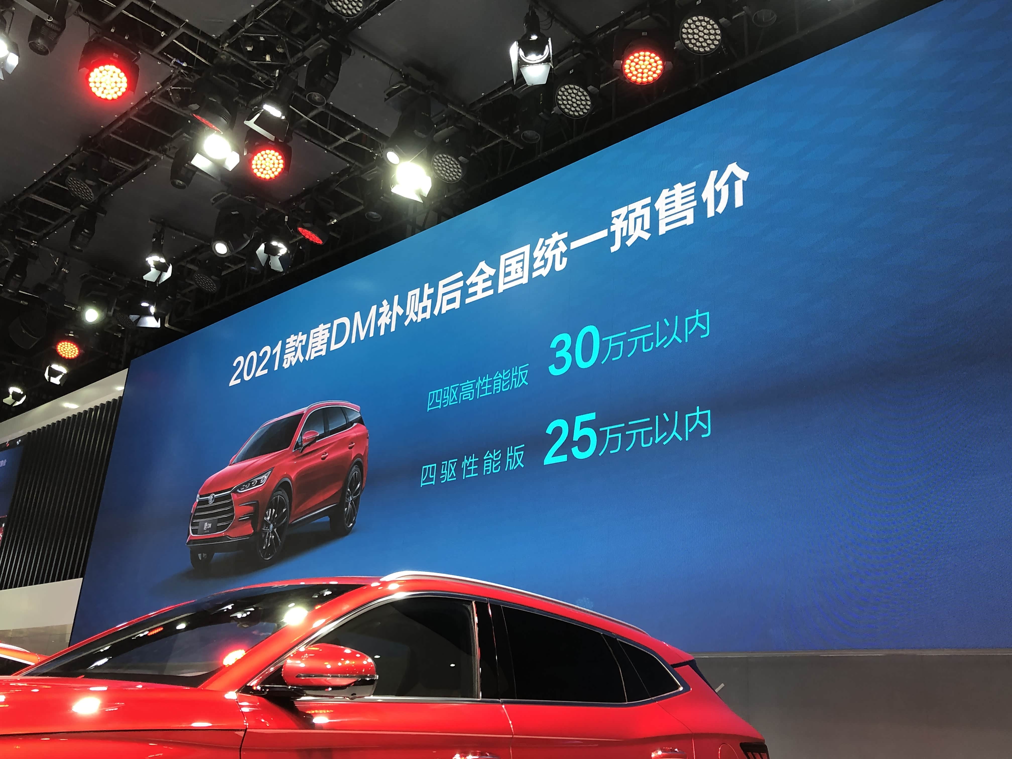 2021款 唐DM(参数|询价)于7月24日成都车展公布预售价以来备受瞩目,预售价格双擎四驱25万内,三擎四驱30万内,4.3秒的01加速性能也和老款32.99万元创世版一模一样,现在售价只有不到30万,可见诚意满满。