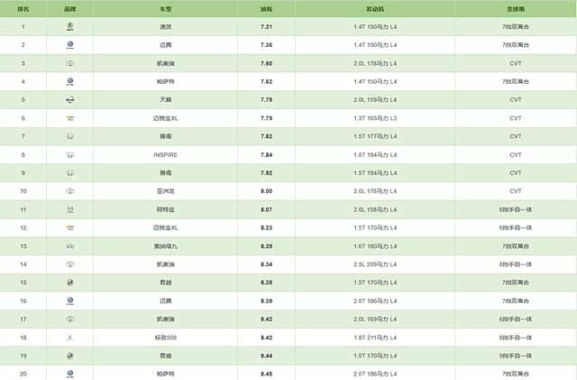说到油耗,咱们先来看一张图,图上是车主们发布的中级车型实际油耗表现。
