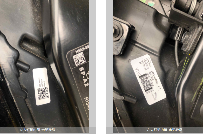大灯生产日期与车辆出厂日期基本相符合,螺丝也没有拆卸痕迹。