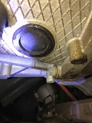 发动机与变速箱结合处螺丝正常没有拆卸痕迹,但是底部有渗油痕迹,可以判定是发动机曲轴后油封渗油,像这种渗油问题不是太严重,小编建议如果不是强迫症的话可以不用去专门维修,后期使用多加注意,每次去保养的时候顺便观察下这个情况有没有加重。