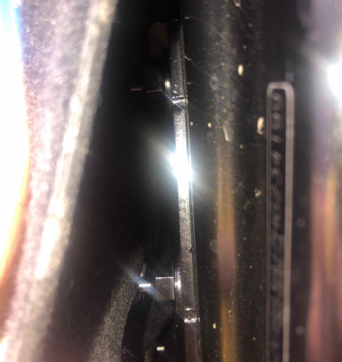 右后门也有喷漆修复得痕迹,但是没有钣金,当时应该就是有点小划痕,只是简单喷漆修复了一下。