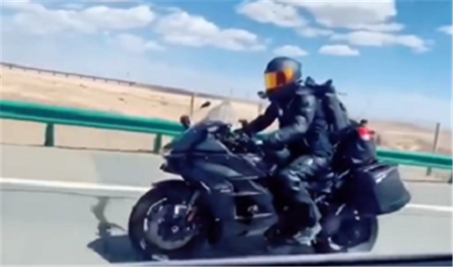 原来,驾驶这台摩托车的便是抖音最有名的“车轮上的小白”,曾经用一台宝马R1200GS摩托车跨了不少个国家,如今为了验证川崎H2 SX是否能进藏而上路。