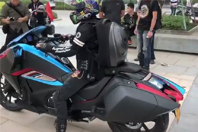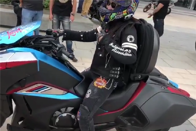 据悉,该款本田摩托车是一辆本田NM4-02,车型定位旅行车,采用的是2轮2座设计,车尾自带边箱,尾部配双出排气,车身运用一定的空气动力学原理和轻量化材料打造,降低风阻。