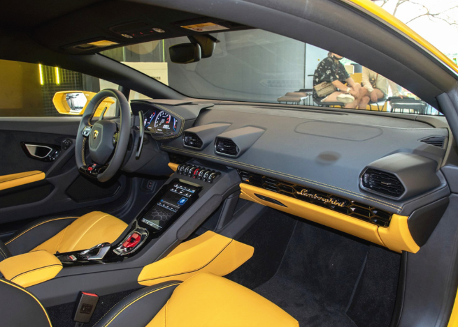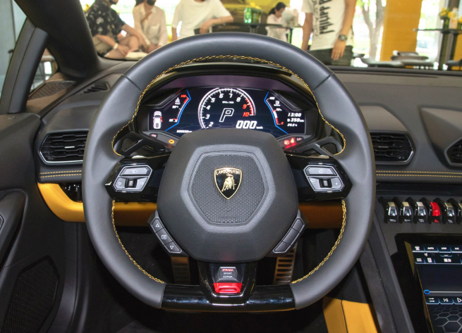 Huracan EVO RWD的内饰相对来说没有那么激进,但用料方面还是很厚道的,也符合年轻用户的追求,触手可及的地方都用了真皮包裹,内饰是黑黄拼接的涂装,具有浓厚的驾驶激情,运动气息十足。中控屏是8.5英寸的大屏幕,只不过倒车影像和雷达需要加装。不过花200多万买车的人,应该不在乎多花几万元加装一些配置吧,特别是兰博基尼这种高端的车型。