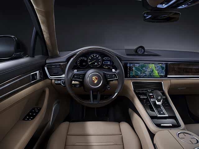 新款Panamera车型的内饰以旧款车型的创新内饰为基础进行设计,通过使用高档材料,营造出经典、运动、典雅的氛围。为了传承保时捷的设计DNA,保时捷在车内和谐整合了现代信息娱乐和互联服务。全新多功能方向盘现在极具辨识度,其镂空式设计仿照了赛车上的轻质方向盘。多功能控件与方向盘的设计巧妙地融为一体。