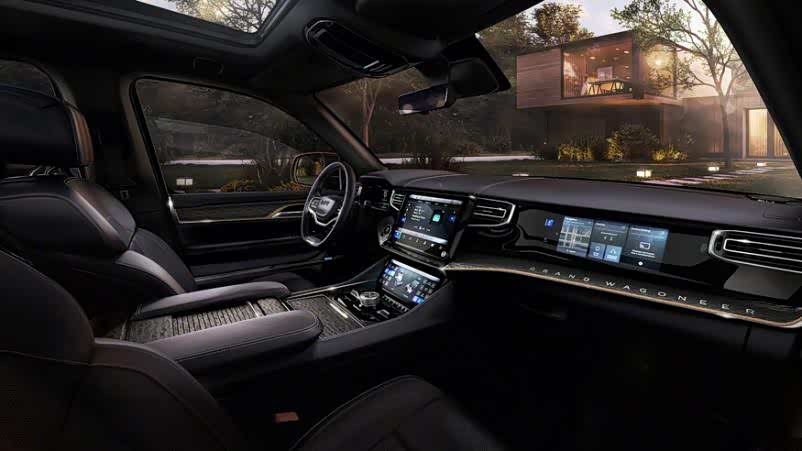 进入车内,全新大瓦格尼诚然令人眼前一亮。联想到去年FCA申请的四联屏专利,这次算是将专利付诸于实际。整个内饰给人的第一印象十分的大气宽阔,宽大的扶手箱,赏心悦目的皮质和缝线,以及在暗处闪耀光芒的四块屏幕,在渲染图中都被极力的强调。很难想象一家大大咧咧且略带粗犷的品牌能够转型的这么快,尤其还是在自家旗舰上。这也让我们对Jeep后面的新车充满期待。