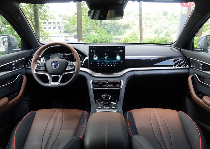在内饰设计上,与新款比亚迪汉以及比亚迪唐相似,中控台加入大面积黑漆面板和银色饰条装饰。新车全系标配一体式龙脊座椅、智汇之心、多功能方向盘、主副驾驶遮阳板、PM2.5 高效过滤器(CN95)等功能。智能配置方面,新车标配第三代DiLink系统、方向盘音响控制系统、车载蓝牙、GPS导航系统、4G流量、前后排USB接口、云服务、车载麦克风、智能语音控制系统。豪华型和尊贵型是5英寸液晶仪表搭配彩色行车电脑,旗舰型是12.3英寸全液晶仪表盘。