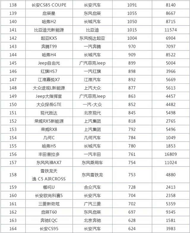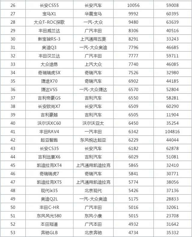 这个榜单26款销量过万的车型中,有13款自主品牌车型,有13款合资品牌车型,可以说平分秋色,这当中排名前四的,和排名后六名的都是自主品牌车型,合资品牌被夹在中间,好平衡的一种状态。