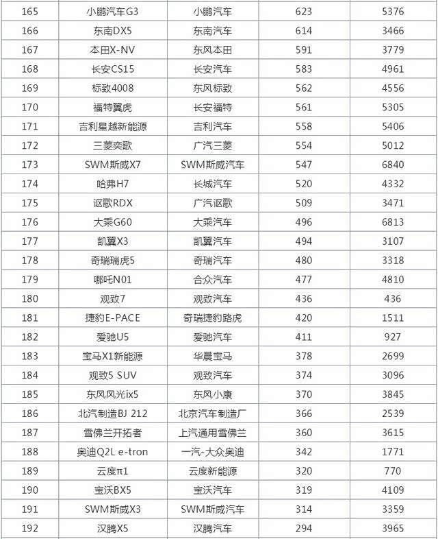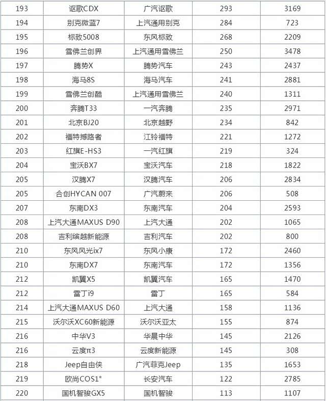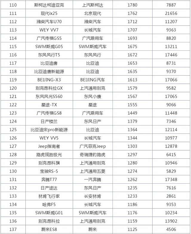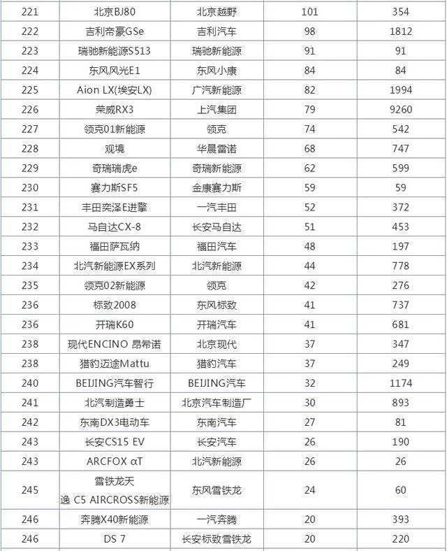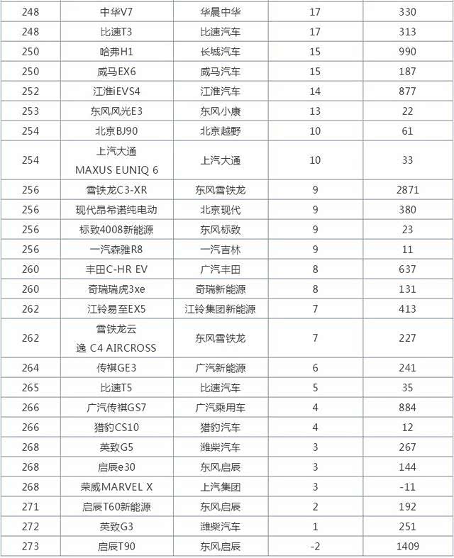 整个榜单共计273款车型,其中26款车型销量突破万辆,4款车型销量突破2万辆。