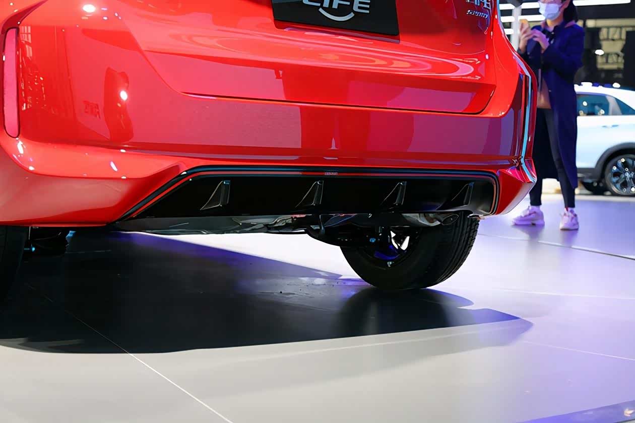 尾部的设计也与飞度基本上保持一致,不过也有不同的地方。LIFE的尾灯边沿采用了熏黑的处理,更强调个性,此外在最下方我们可以看到LIFE装有扩散器,而且与前脸一样加入了红色拉线装饰条,单轮外观的话,LIFE在细节上比飞度做的更好。
