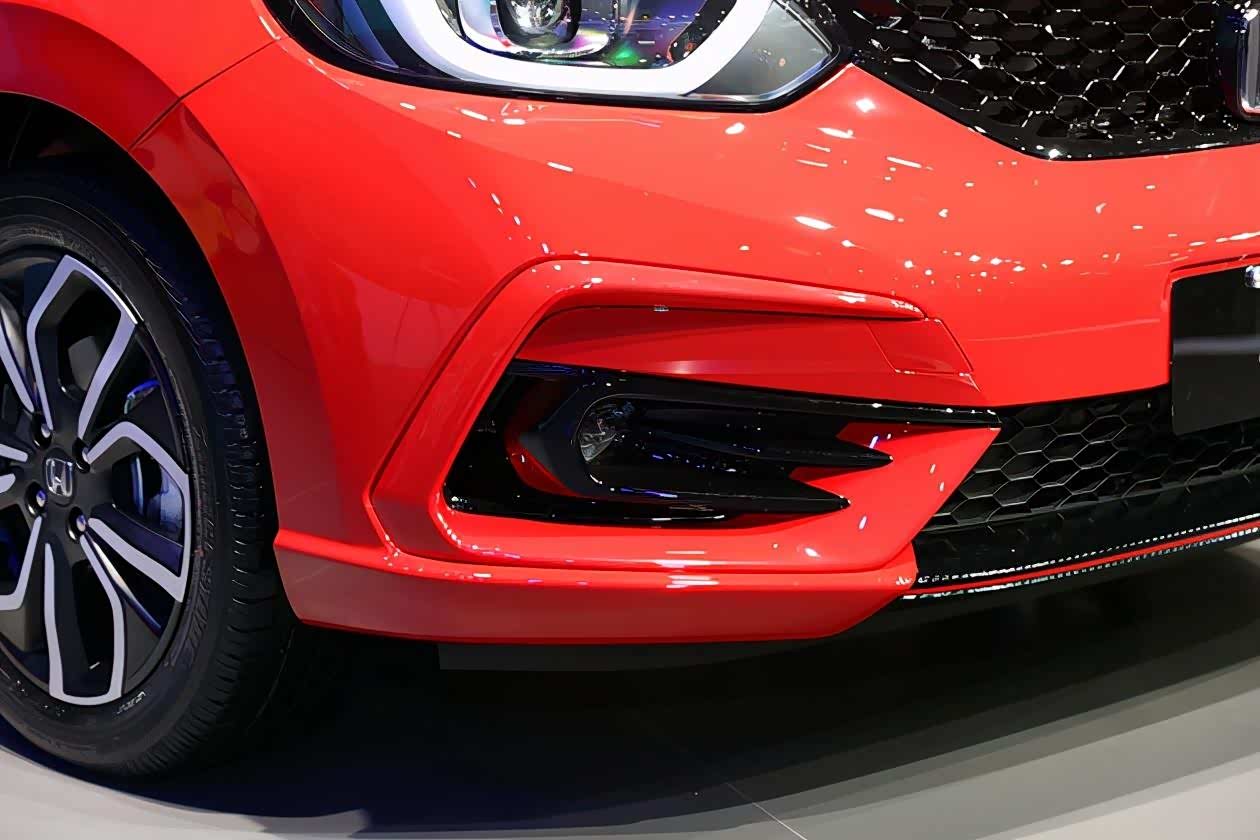 通过在现场仔细的辨认,我们可以看到LIFE SPORT版在设计上其实与飞度潮跑Pro版保持一致,只是在细节上有一些小的区别,前脸它们之间最大的区别就是前保险杠两侧的装饰在配色上有所不同,飞度黑色的装饰件面积更大,而LIFE则有部分与车身同色。