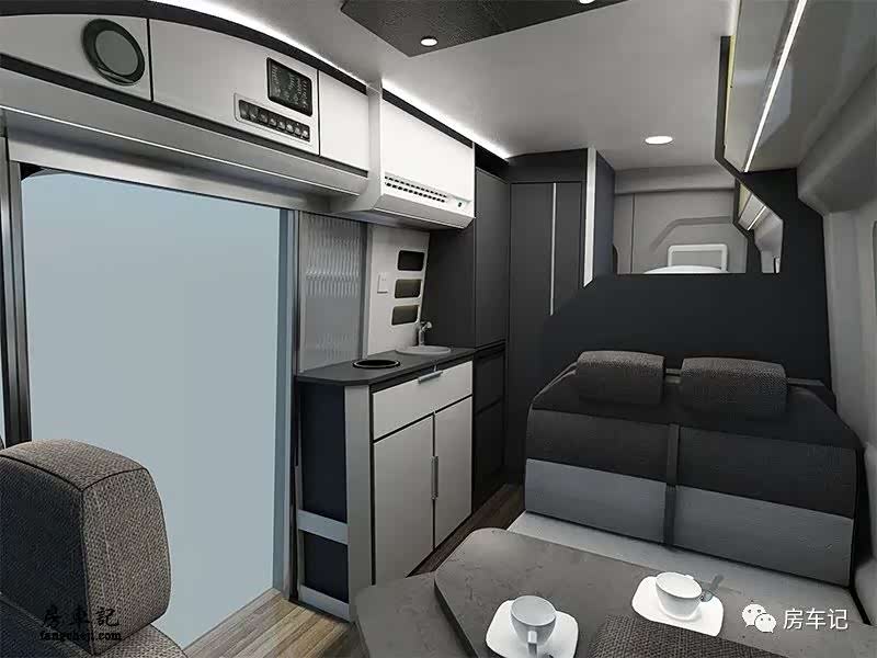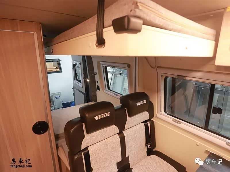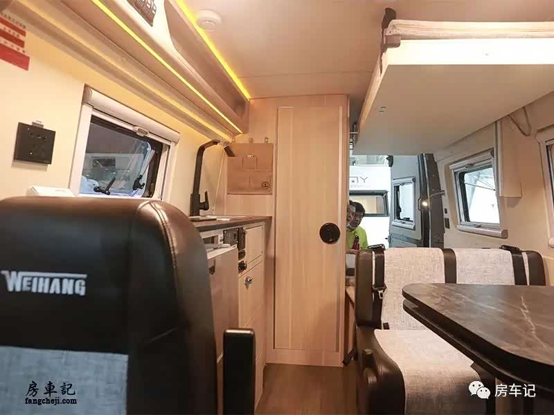 总结:无中门的设计让交通和住宿两者的交界更加分明。前方就是驾驶舱,后方就是一个方方正正的生活区。优点:厨房空间不仅超过的B型房车,面积上比一些C型房车还要大。内部还拥有双人卡座的会客厅空间,功能区域完整。缺点:车内高度不适合个子高的车友使用。