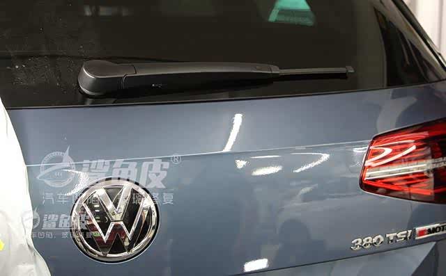 这是一辆大众高尔夫旅行款的后盖,车主说是在地下停车场不小心压到钥匙,导致后盖自动打开磕出来的。像这种比较小的凹陷,如果想要用顶翘的方式修复就需要把里面的护板拆掉,很麻烦,用拉拔的方法就再好不过了。