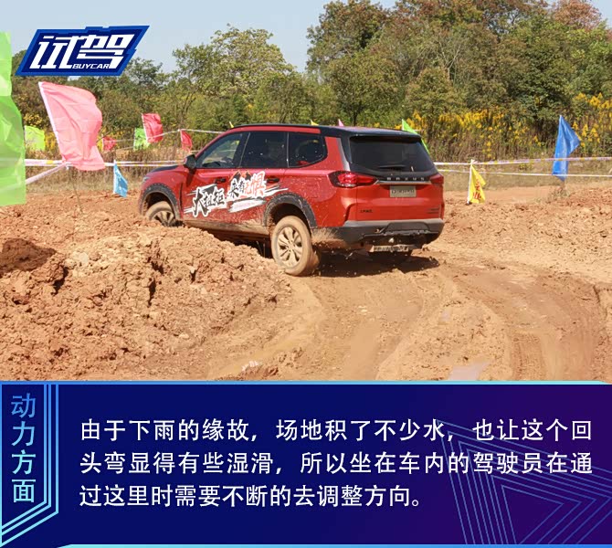 采用了电子助力形式的转向系统换来的是更为轻盈的转向手感,即使是一个柔弱的女子也可以在这样泥泞的弯道中精准掌控车头方向。