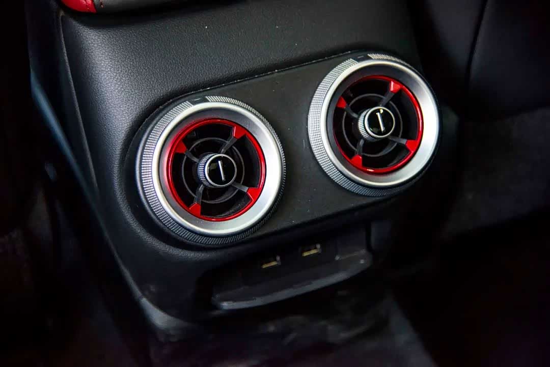 配置方面,这台VV7 GT brabus automotive基本把长城旗下所有已知的配置都拉满了,包括全液晶仪表盘、12.3英寸中控高清触控屏(支持车联网、OTA升级、面部识别、语音控制、GPS导航等)、支持L2级驾驶辅助功能的全速域自适应巡航、前矩阵式LED&激光大灯、Infinity高保真音响系统、支持空气净化与PM2.5过滤功能的双区自动空调等等。中控台电子挡把的下方有一个连贯的掏空区域,内有2个USB接口与一个12V电源接口(后排空调出风口下也有2个USB接口),可惜这一掏空区域的容积并不大,很难作为一个合格的储物空间使用。