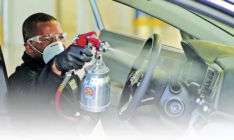 和大多数经销店在疫情期间的预防措施一样,这家经销店员工都戴着口罩和手套,看起来似乎遵循美国疾控中心(U.S. Centers for Disease Control and Prevention)有关工作场所确保安全的指导原则。