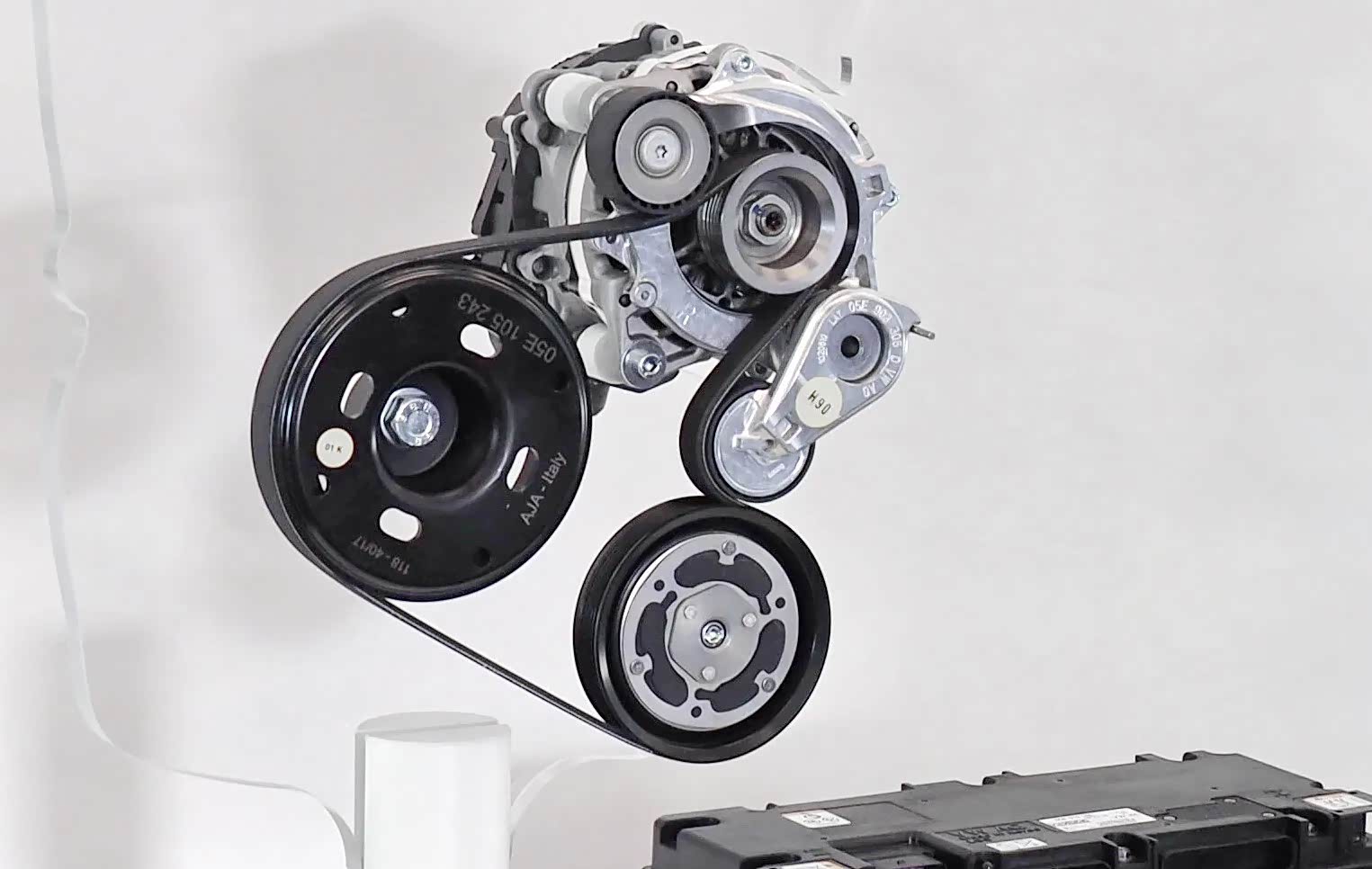 从技术角度来说,启动发动机是皮带式起动发电机,顾名思义,这个电机不仅取代了传统发电机工作,还能在热机的状态下承担起动机的角色。由于48V电压高,在同样的电流下起动机拥有更强的启动功率,故能直接把内燃机带至接近怠速附近再点火。这样一来,发动机启停的时候再也不会听到传统12V起动机那种“嘎嘎嘎”的启动声音以及随之而来的振动与延迟。启动可以说是瞬间完成,大幅度提升了客户对启停技术的接受程度以及使用频率。