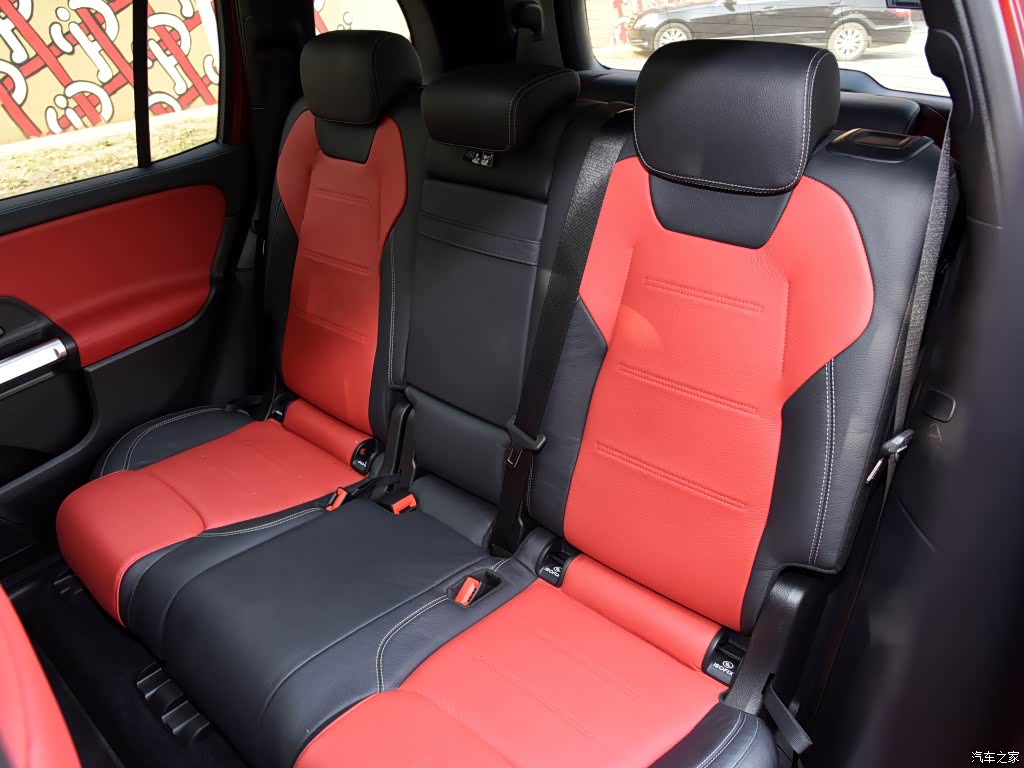 外观方面,该车整体造型与普通版GLB车型差异较为明显,部分细节进行了黑化处理,新增的外观套件涵盖了车身包围、轮圈等诸多组件,车头部分依然采用大尺寸进气格栅,配以直瀑式中网进行填充,中间配置大尺寸三叉星标,看起来立体感十足,两侧分体式大灯造型较为规整,微微内陷在车头两侧,增强了车头的整体性,同时,前包围两侧加入了黑色装饰条,使其看上去更为立体。