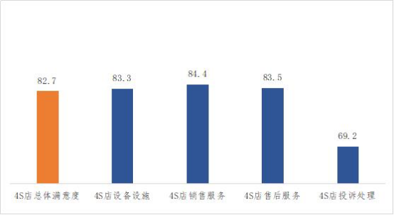 此次调查主要内容包含汽车4S店服务满意度评价和NPS(Net Promoter Score,净推荐值,即调查中推荐者所占的百分比减去批评者所占的百分比)、汽车质量、消费者权益保护三个方面。调查结果显示,汽车4S店服务综合满意度为82.7分,总体表现良好。