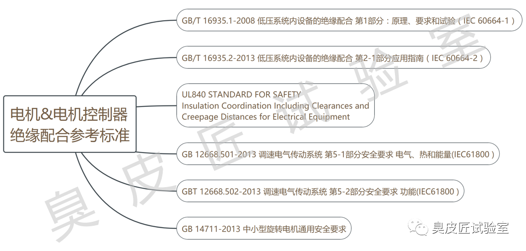当前没有专门针对电动车高压部件的电气间隙和爬电距离的参考标准,现在行业内参考的标准主要是工业产品的一些标准,这些标准主要来自于IEC,GB一般也直接引用,具体如下: