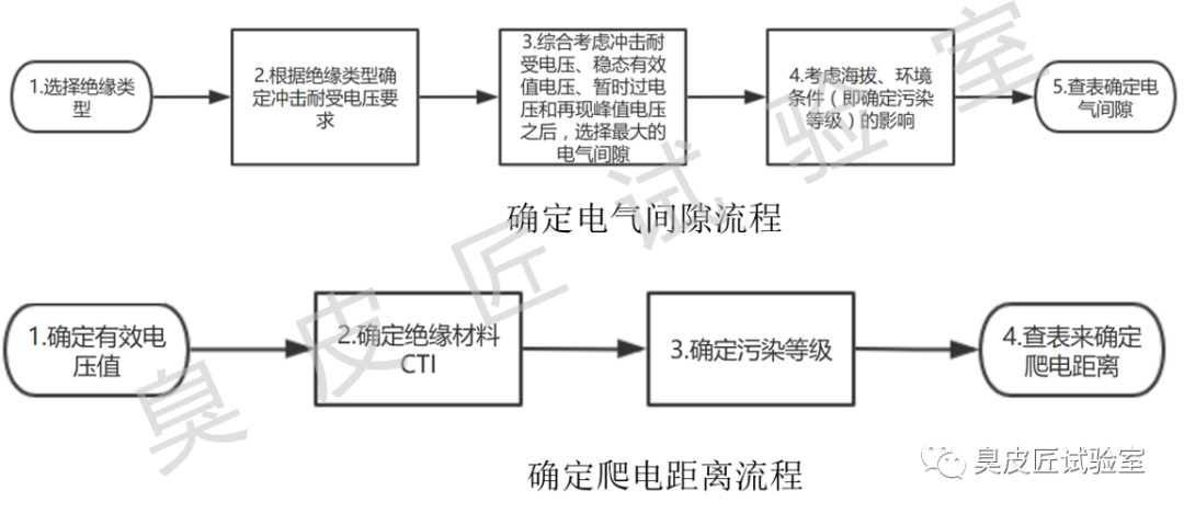如下两张图,基于GB/T 16935展示了确定电气间隙和爬电距离的方法及流程。对于电机在GB 14711-2013 中小型旋转电机通用安全要求对于电机的电气间隙和爬电距离也有要求,可以参考。
