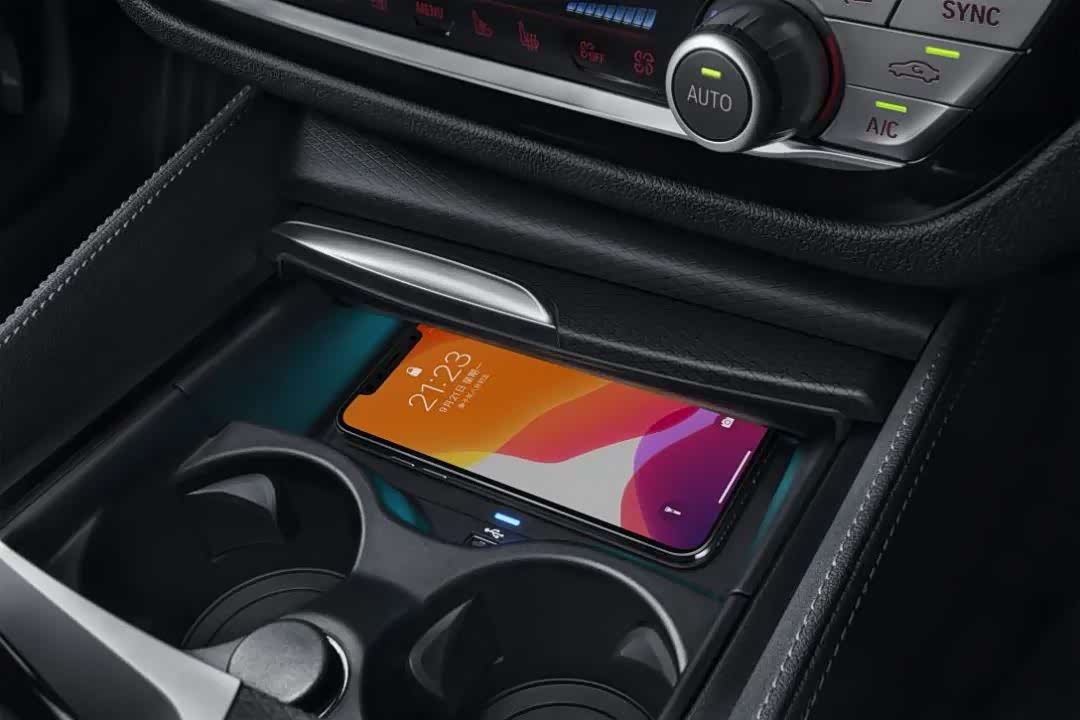 上车出发前,工作人员给我一部匹配好的iPhone手机。把手机靠近车门把手,车门立刻解锁,再把手机放在中控台的无线充电板上,按下启动按钮,车辆就启动了。