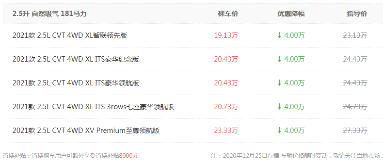 车家号·0浏览·2020-12-26 19:22 · 安徽在12月25日,北京地区某经销商处了解到,日产奇骏已经出现了比较大的优惠幅度,其中2021款 2.5L CVT 4WD XL智联领先版 让利4万元,价格从之前的23.13万降到了目前的19.13万。具体车型优惠如下图所示。