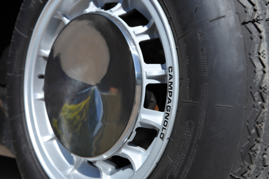 图:轮圈由Campagnolo代工,轮胎则是米其林的XWX205-70,但为了解决左右轮速度不等的操控性问题,后期版本换上了215/70VR15的后轮胎加以改善。