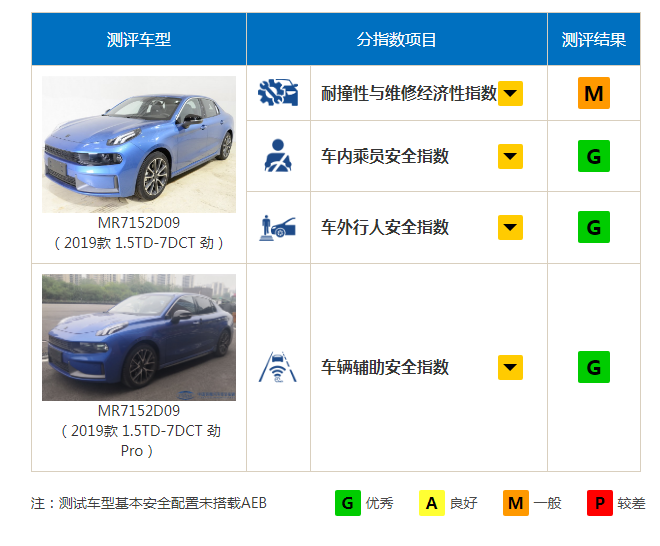 通过中保研的所提供的领克03碰撞成绩,我们发现,领克03的碰撞成绩整体表现还不错,除了低速部分碰撞成绩拿了M之外,其余都是G,所以从结果来看,领克03的安全性并无太大问题,当然我们也将对每一个碰撞细分项目进行较为细致的分析。