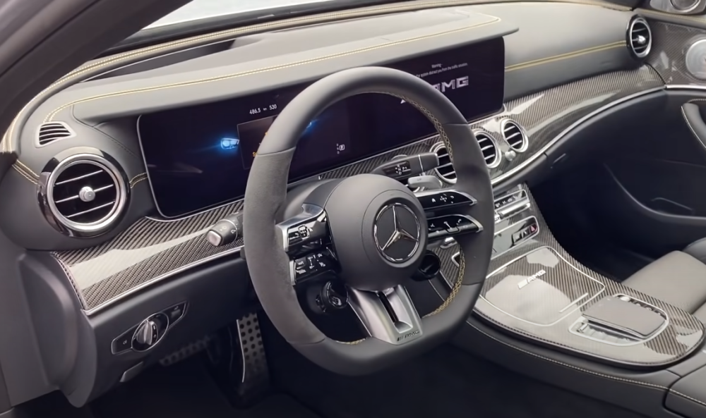 新款E63s的内饰依旧沿用老款的设计风格,最明显的升级点在于全新的AMG方向盘。两侧按键的功能变得更加强大,并且在下方加入了带屏幕的驾驶模式切换旋钮。这两颗旋钮就如同保时捷的鸡血按键,从旋动那一刻就让你开始兴奋,而M5方向盘两侧的驾驶模式预设按键虽然更加快捷方便,但仪式感差了些意思。