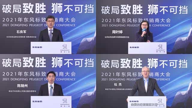 本次东风标致经销商大会的主题为"破局致胜、狮不可挡"。"破局致胜"展现了东风标致品牌与广大经销商伙伴直面风险和挑战,突破创新、戮力同心,破局新生、强势回归的顽强斗志;"狮不可挡"则展示了东风标致品牌对于达成2021年各项目标的强大信心与必胜决心。