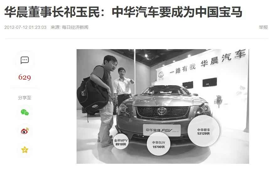 8年前(2012年)祁玉民“中华汽车要成为中国宝马”的壮语,言犹在耳。
