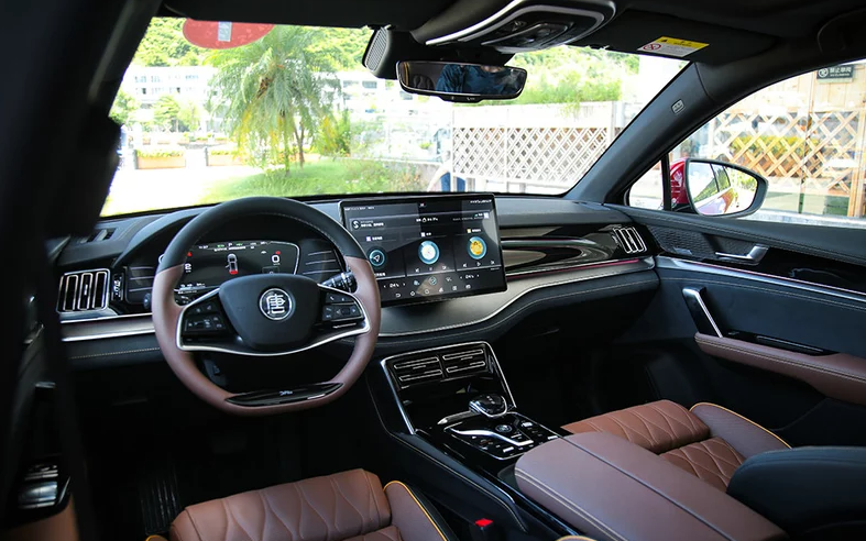 内饰方面,新车中控造型与比亚迪汉风格相似,依然主打年轻科技风,运用了多种材料进行拼接,提高了车内的档次感。与此同时,新车还换装了与与汉相同的双辐式方向盘,其空调出风口也改换成了龙爪式设计,并配备了科技感十足的电子挡把。车机方面,新车配备的15.6英寸中控大屏内置了比亚迪最新的DiLink 3.0智能网联系统,支持OTA升级、在线音乐、在线导航以及应用商店下载APP等功能。